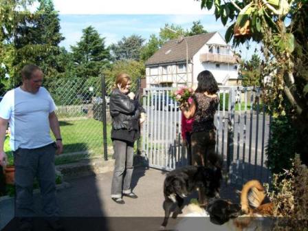 mit ihren Zweibeinern beim Treffen, die eine mehr oder weniger lange Zeit ihre