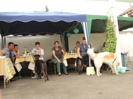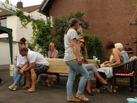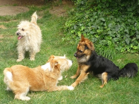 "5. Ehemaligentreffen - diesmal mit dabei: Savino, Mirto, Manuel, Punto, Vera, Sima, Santo, Bopsi (jetzt Lotte), Tessa, Peppino, Bello (jetzt Maffy), Sissy (jetzt Lotte) und all ihre Hundefreunde, mit denen die Ehemaligen zusammen wohnen "